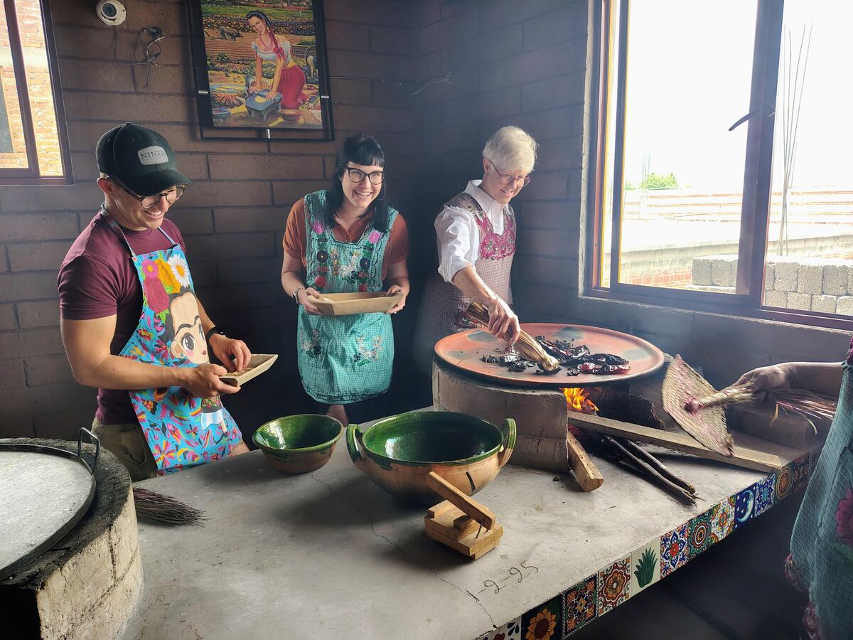 A day of authentic cultural interaction with real rural Mexico´s everyday lifestyle. Meet a lovely zapotec traditional cook and her family at their home. Cook together and taste the best flavors of Oaxaca cuisine. After a visit to the local market, you will make chocolate on a “metate” and a corn “tortilla” on a “comal”. Prepare “mole amarillo tamales” for lunch. Also, get to know about the traditional woven textiles dyed in natural colors meeting a zapotec master weaver.
